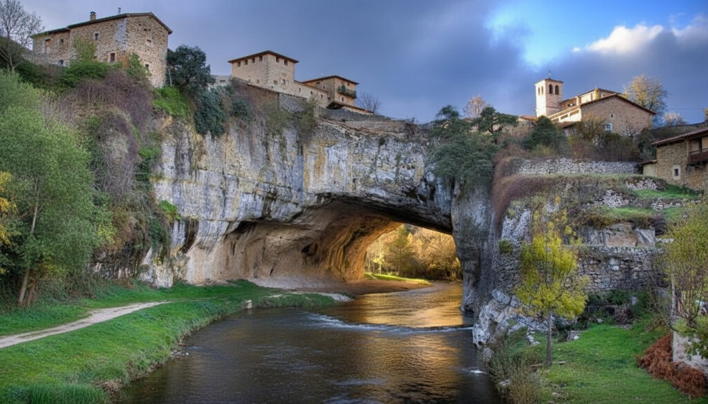Puentedey is one of Spain’s most surprising little villages because it’s built over a natural rock bridge shaped by the river below. That alone makes it worth the detour.